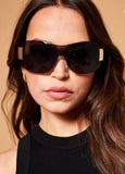 Bella wraparound sunglasses in black with gold detail , by Angel Whispers . All lenses UV approved