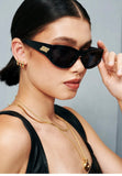 Emilee oval Sunglasses in Lilac with gold detailing. Trending style by angel whispers . All sunglasses come with black draw pouch. Category 3 lenses , UV protection .