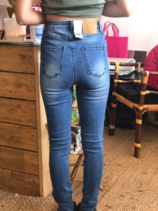 Refuge high waisted, rips Knees, indigo denim jeans, soft stretch skinny leg .